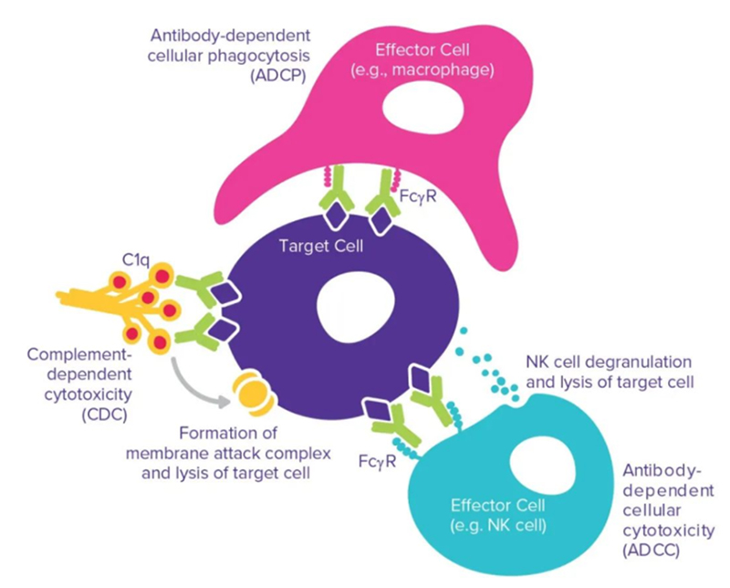 Fc-mediated interaction: ADCC, ADCP and CDC